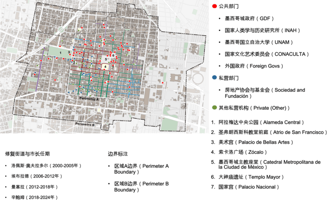 墨西哥城历史中心咨询委员会,包括墨西哥城历史中心协会,S.A.(营利性);历史中心基金会(私人非营利性)。