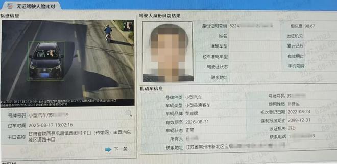 【违法地点】陇西县南安大道西街村卡口时,被电子监控抓拍【违法当事人/车辆】李*鹏驾驶苏DJ***9号小型普通客车