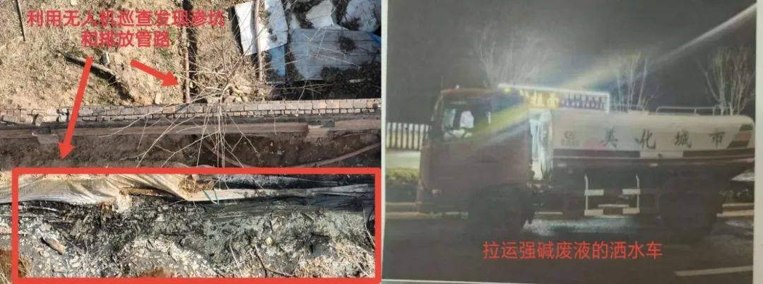 2025年2月21日,开封市生态环境局执法人员在黄河流域生态环境问题排查过程中,使用无人机发现龙亭区柳园口乡某畜禽养殖场围墙外水坑内水体呈黑绿色,立即赶至现场调查。调查发现,畜禽养殖场内铺设有两根管道,穿过围墙连通至无任何防渗措施的渗坑内。执法人员现场使用pH试纸检测,渗坑内污水pH值为碱性,据此确认渗坑污水并非畜禽养殖废水,进而转变调查方向,对进入现场的外部车辆开展排查分析。随后,生态环境部门启动地方行刑衔接机制,联合公安机关查看道路监控,对可疑车辆及行车轨迹开展排查,锁定一辆多次驶入案发现场洒水车具有较大嫌疑。经进一步调查查明,2025年1月至2月,孙某某非法从事农药中间体生产制造,后停止生产并拆除生产设备。因生产过程中产生的强碱废液无法处置,孙某某联系畜禽养殖场所有人王某某,经王某某同意后,雇佣车辆分多次将20余吨强碱废液运输至养殖场内,并通过软管排至墙外渗坑内。经鉴定,渗坑内废水pH值均大于12.5,根据生态环境部《危险废物鉴别标准 腐蚀性鉴别》(GB 5085.1-2007),属于危险废物。