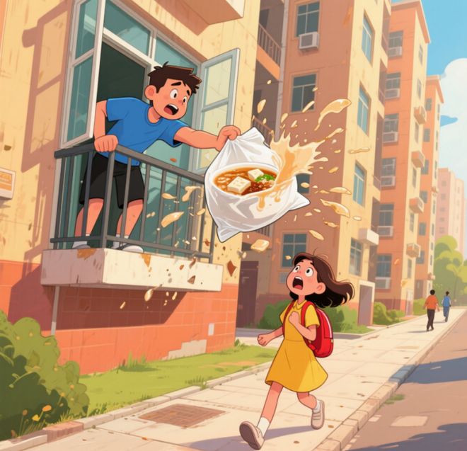 2025年4月3日,昆明市西山区某小区一楼商铺前突然“天降”一袋未吃完的豆腐脑,豆腐脑从高空砸落,汤汁四溅、塑料袋破损,险些砸中过往行人。接到报警后,昆明市公安局西山分局金家河派出所民警迅速开展调查,锁定抛物者陶某。面对民警的讯问,陶某承认了自己为图省事直接将豆腐脑从27楼抛出窗外的行为。最终,公安机关依法对其作出行政拘留6日并处罚款的处罚。